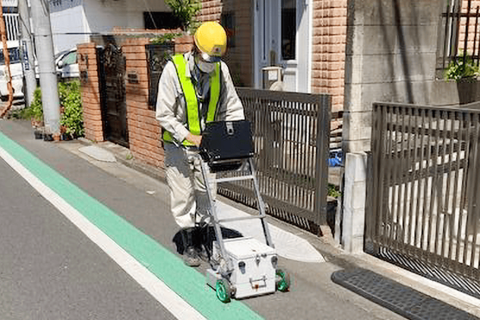 レーダー波を利用した非開削測量を行い、